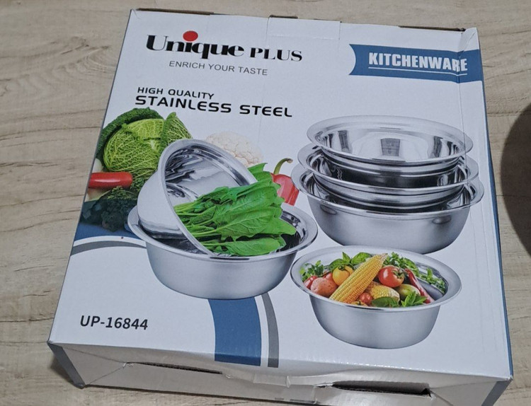 ابکش استیل ست همراه لگن ۶ پارچه «۳تا لگن ،۳تا ابکش»