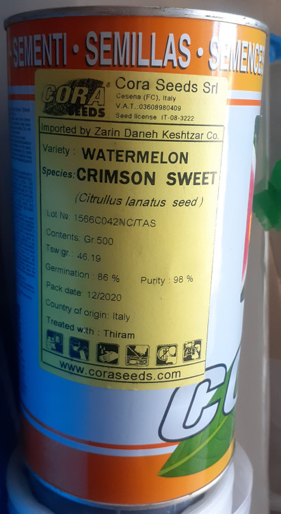 بذر هندوانه رقم کریمسون سوییت تولید شده در سال 2020 در شرکت کورا ایتالیا وارد کننده شرکت زرین دانشور کشتزار